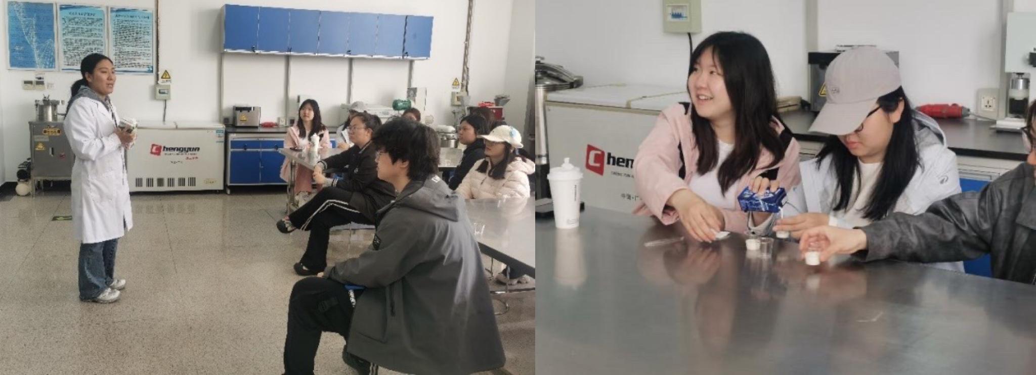 学院在教学示范中心同步开展“乳制品科学与风味品鉴之旅”特色研学,采用“自学+感官评价+理论教学”模式,聚焦牛奶、酸奶、奶酪等产品,引导学生梳理加工工艺、关联风味原理,将专业知识与饮食文化深度融合,强化动手与思辨能力。